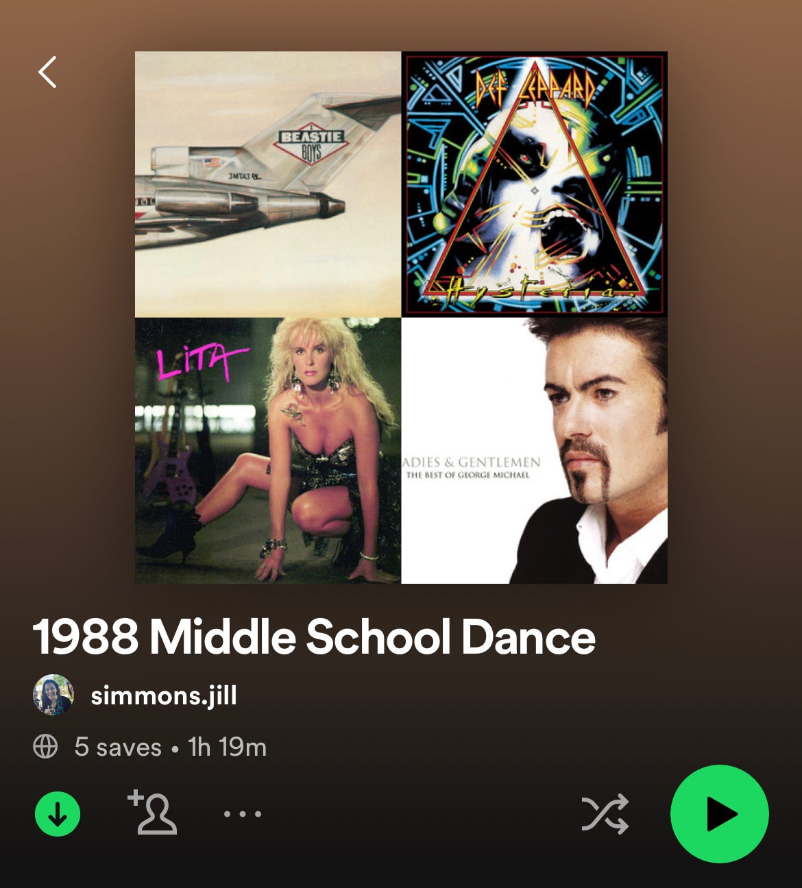 One thing I’ve learned in making playlists is that you need a good theme because not all songs go together, no matter how great they are individually. A quick survey of popular mid-80s music made it clear I needed a focus, which sparked the idea of recreating the setlist for my 1988 middle school dance.